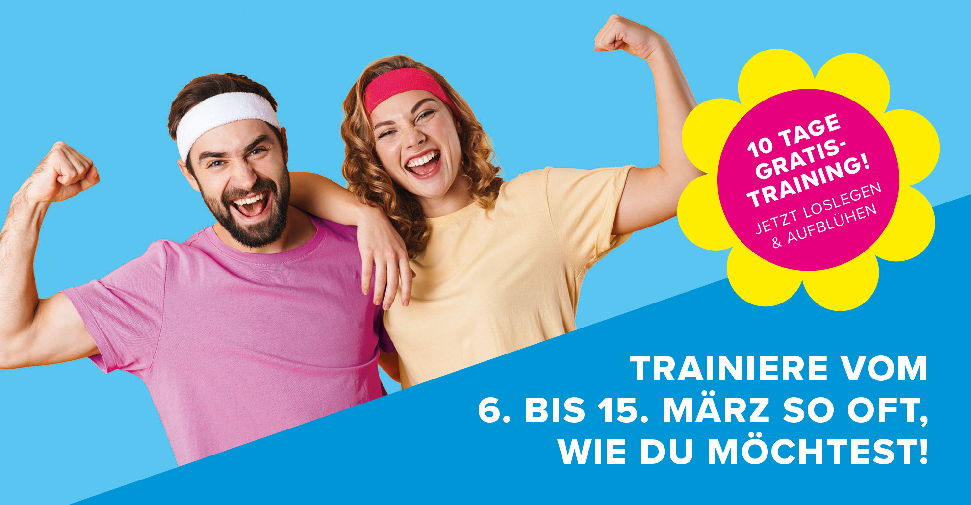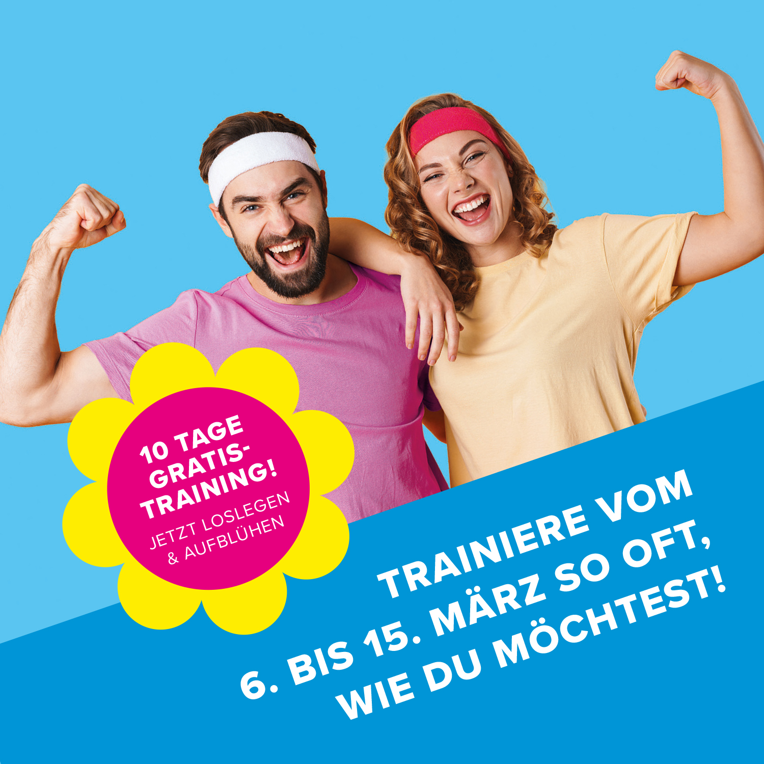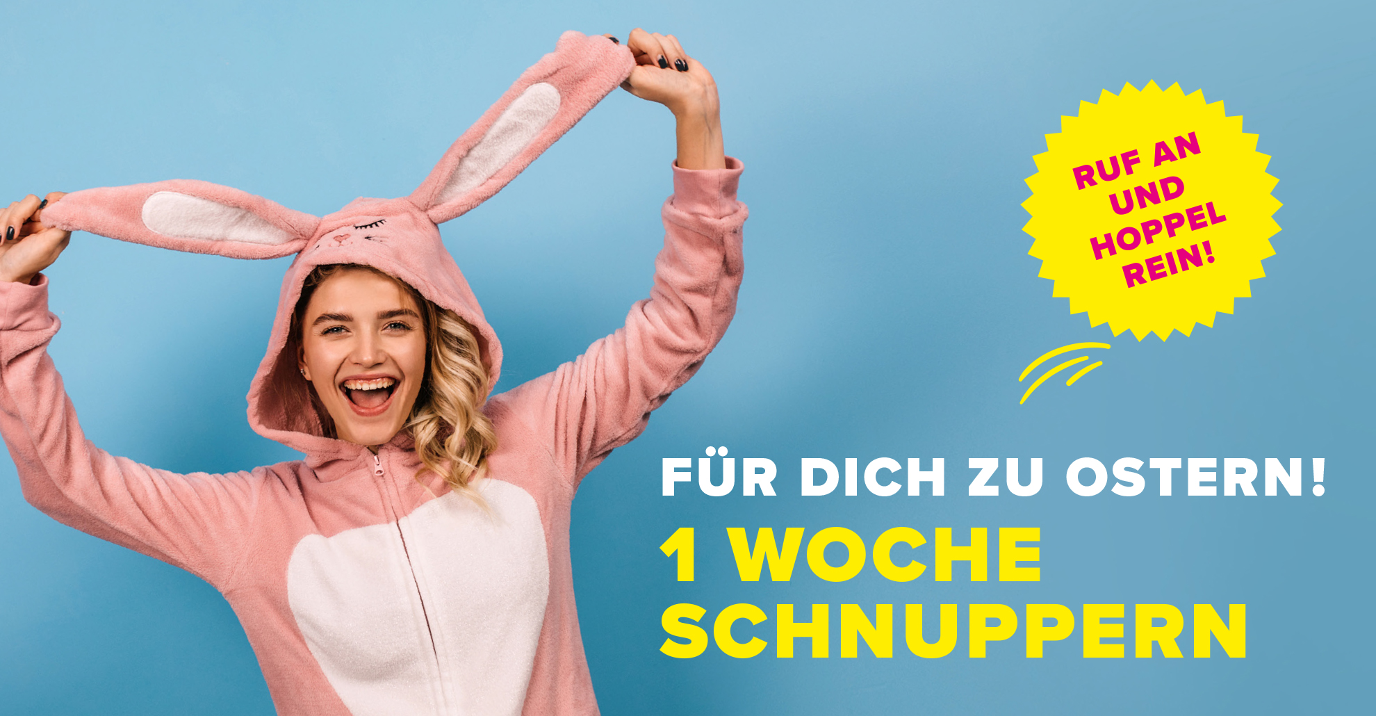Jetzt eine Woche lang gratis testen und loslegen: Alle Kurse, Krafttraining, EGYM-Geräte … inklusive einem Schnuppertraining mit Trainer!